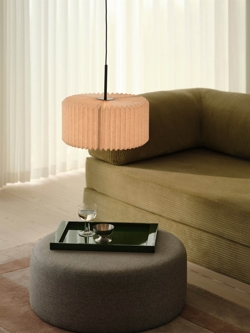 Pendlen Vivienne bringer et elegante udtryk til enhver indretning med sin plisserede stofskærm. Den dekorative skærm skaber et blødt og behageligt lys, der gør lampen til et godt valg til stuen eller som belysning over spisebordet.