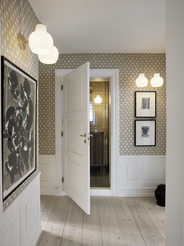Louis Poulsen VL Ringkrone 2 væglampe, messing/blank opal - designet af Vilhelm Lauritzen