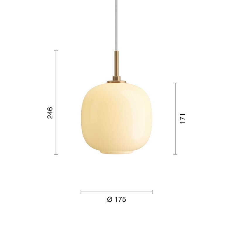 VL45 Radiohus pendlen giver et blødt og behageligt lys og passer med sit elegante udtryk godt ind i både moderne og klassiske indretninger. Skærmen er af mundblæst glas og toppen er af ubehandlet børstet messing, der vil patinere med tiden.