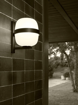 Wally væglampen kan både bruges inden- og udendørs. Lampen fås i to farver, metallisk hvid og sort.