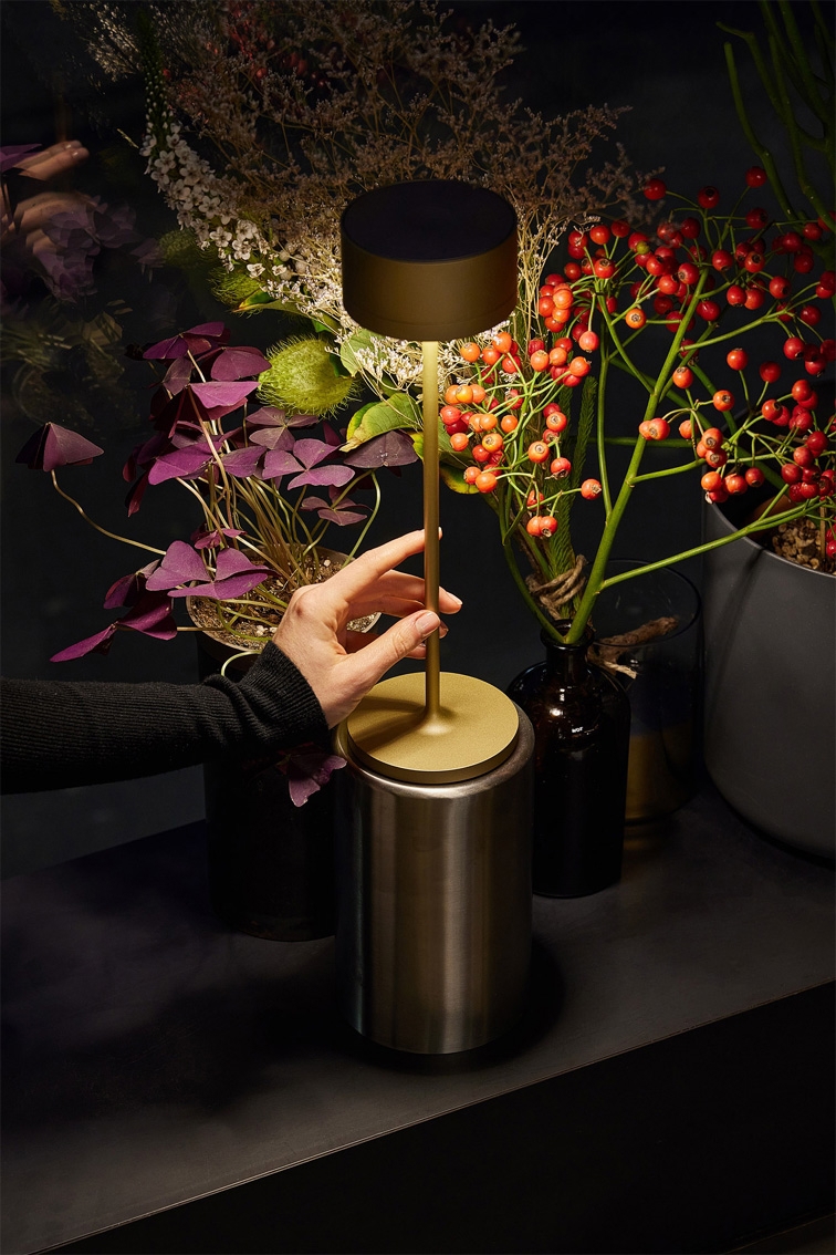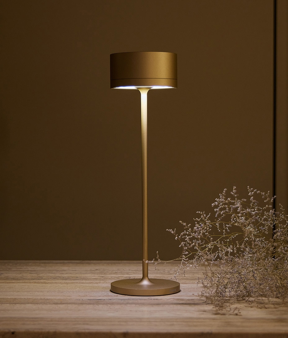 Den eleganten bordlampe er eget til udendørs brug takket være IP-klasse 65, og opladningsbase med kabel og USB-port er inkluderet i pakken, så du nemt kan oplade lampen.