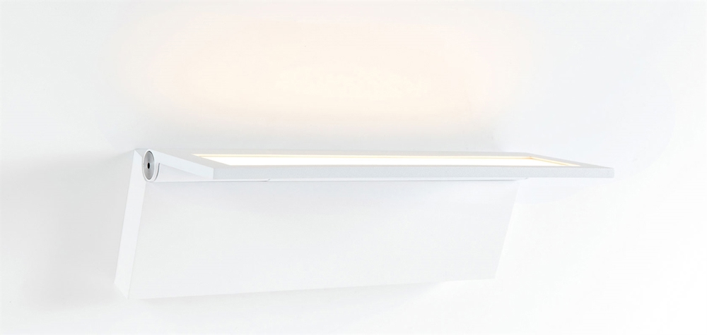 En enkelt armatur består af tre komponenter: et stramt kabinet, en papirtynd OLED-lyskilde og et specielt beslag, der ikke kun tillader lyspladen at vippe op til 180 °, men også ændrer udseende og følelse af armaturet.