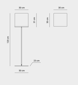 Mål: H120 cm Base: B23 cm Top: B30 cm