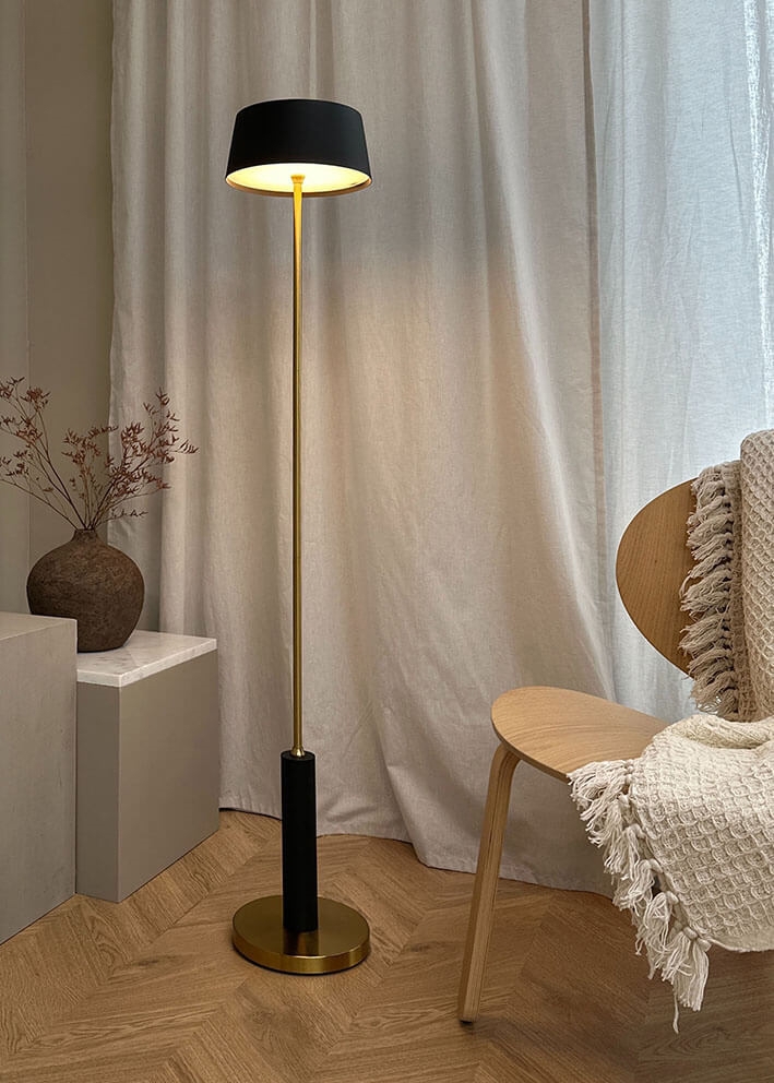 Dyberg Larsen Yoyo batterilampe / gulvlampe, sort/messing