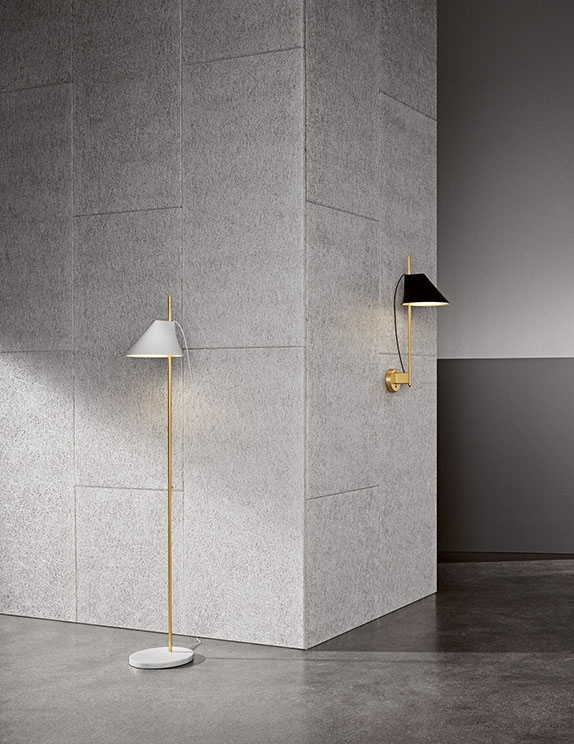 Yuh fås med forskellig finish som bordlampe, gulvlampe og væglampe.