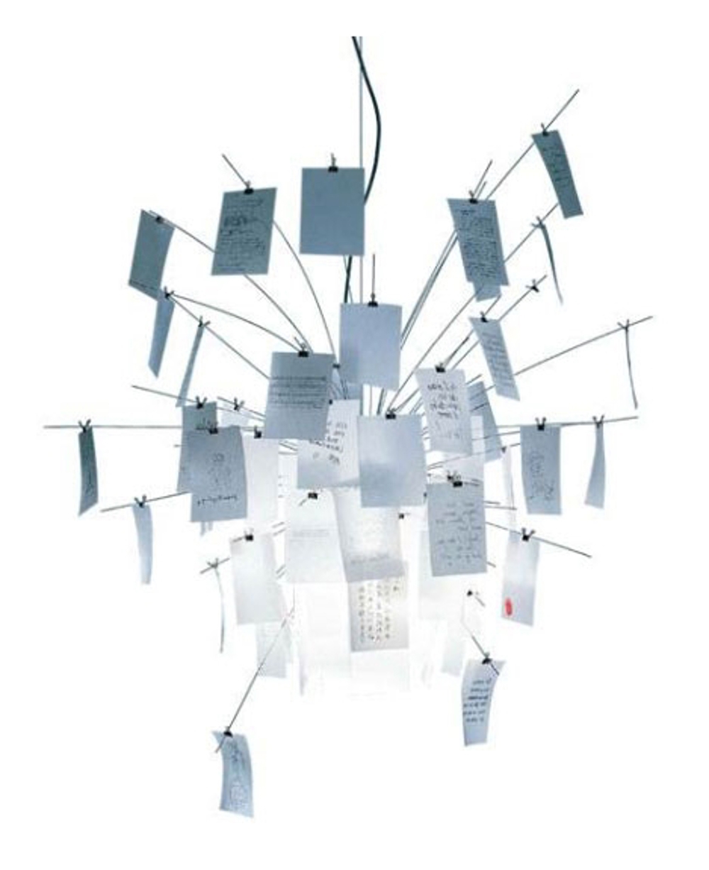Spændende pendel designet af Ingo Maurer. Leveres i to størrelser med papirstørrelse i enten A5 eller A6. Zettel'z måler 80X80 cm, og Zettel'z A5 måler det dobbelte; 120X120 cm.